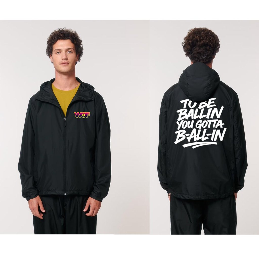výrazný statement na zádech: TO BE BALLIN YOU GOTTA B-ALL-IN
