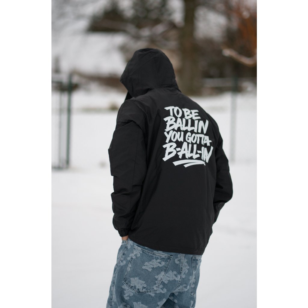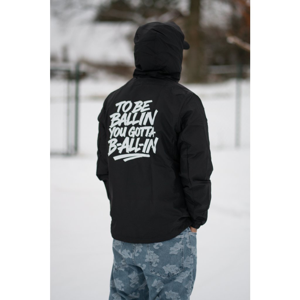 výrazný statement na zádech: TO BE BALLIN YOU GOTTA B-ALL-IN